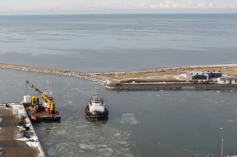 De hollandske entreprenører forestår udgravningen af havnebassinet og konstruktionen af molerne for den nye arbejdshavn. Her skal materialerne til etableringen af tunnelelementfabrikken sejles ind og tunnelelementerne senere slæbes ud og nedsænkes på havbunden.