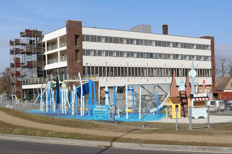På stranden er der etableret en midlertidig bygning, der pt. huser ”Femern Development” samt kommunens ”Femern Agency”. Femern Agency er et myndighedssamarbejde, der har til formål at skabe en smidig og effektiv myndighedsbetjening for arbejdskraft til Femernprojektet. Begge virksomheder/kontorer skal senere flytte ind i nyt kontorhus/hotelbygning, der projekteres lige i vandkanten.