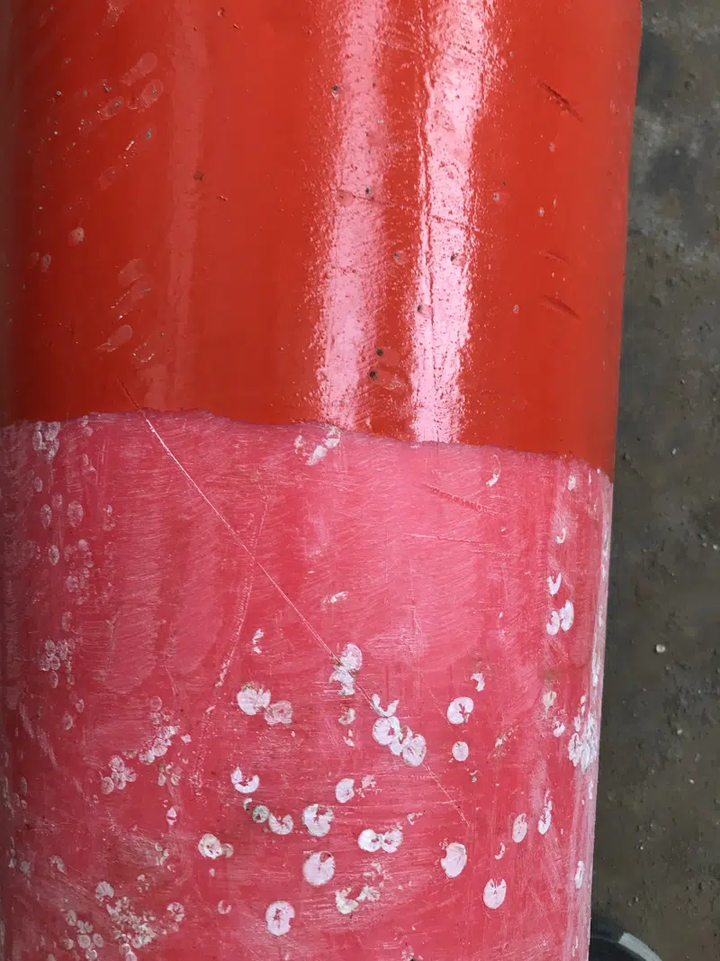 De grønne og de gule bøjer plejer vi ikke at have de store problemer med, da disse er mere farveægte. Farven på de røde bøjer falmer relativt hurtigt, og bøjerne bliver hvide. Med en grundig afrensning, slibning, lidt lapning af huller og en god kvalitetsmaling er det nu muligt for os at forlænge levetiden ganske væsentligt. På fjorden har vi haft malede bøjer i 5 år uden, at de viser tegn på atskulle udskiftes med nye.