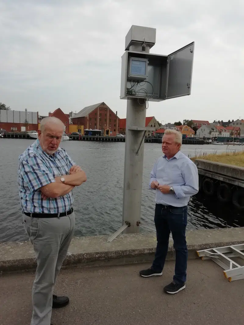 Vandstandsmåleren er færdigmonteret, den blev taget i brug fredag den 19. juli, hvor formanden for Teknisk Udvalg Gert Mortensen også var med.