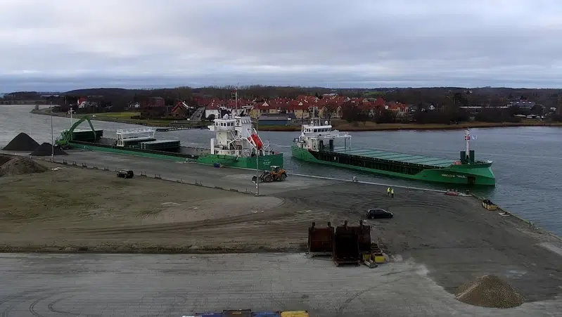 Siden da har der været godt travlt ved kajen, hvor det ene skib efter det andet har losset gods. Det har ikke mindst været store mængder grus og forskellige fraktioner af skærver, som med lastbil er fragtet videre til Femernbyggeriet i Rødbyhavn.