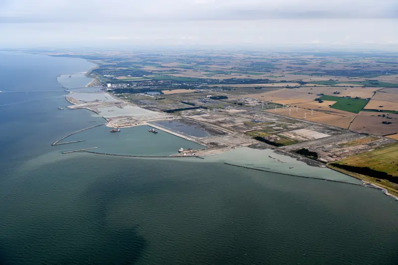 Det meste af anlægsarbejdet skal ske under vand, men anlægshavnen og det 300 ha store forland tager nu form og synliggør størrelsen af projektet.
